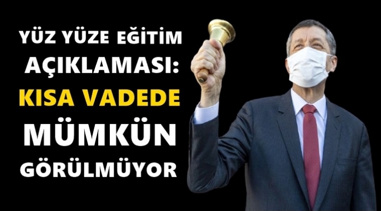 Bakan Selçuk, yüz yüze eğitimle ilgili olarak “Salgının seyri nedeniyle tüm sınıfların aynı anda tam zamanlı yüz yüze eğitme geçmesi kısa vadede mümkün görülmüyor. Sınıflarda yüz yüze eğitimin sağlıklı yürütülmesi için yaptığımız planlamayı yakın zamanda kamuoyu ile paylaşacağız” ifadelerini kullandı.