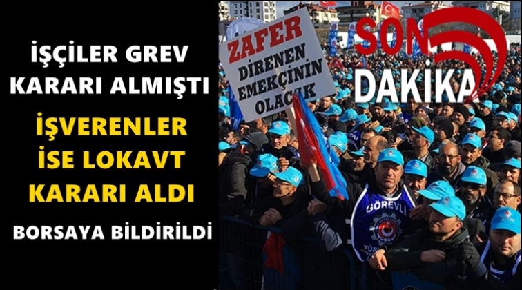 Türk Metal Sendikası'na bağlı olan 130 bin işçinin grev kararı alması üzerine Türkiye Metal Sanayicileri Sendikası lokavt (işten uzaklaştırma) kararı aldıklarını borsaya bildirdi.