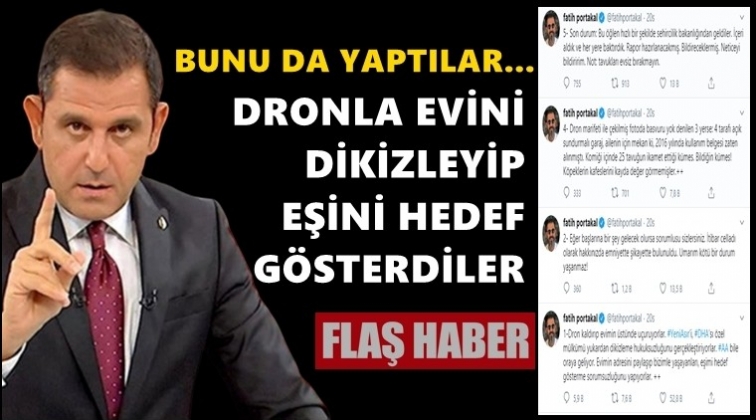 FOX TV Ana Haber sunucusu gazeteci Fatih Portakal, İzmir Seferihisar’daki arazisinin drone ile çekilen fotoğraflarının da yer aldığı ve kendisini imar kaçakçılığı ile suçlayan haberle ilgili açıklama yaptı. Portakal, “Dron kaldırıp evimin üstünde uçuruyorlar. Özel mülkümü yukarıdan dikizleme hukuksuzluğunu gerçekleştiriyorlar. Evimin adresini paylaşıp bizimle yaşayanları, eşimi hedef gösterme sorumsuzluğunu yapıyorlar” dediği açıklamasında arazisi ile ilgili detayları anlattı.