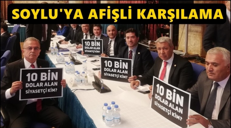 Komisyonda 10 bin dolar dövizleri açan CHP'li milletvekilleri Soylu'ya "10 bin dolar alan siyasetçi kim' diye sordular.