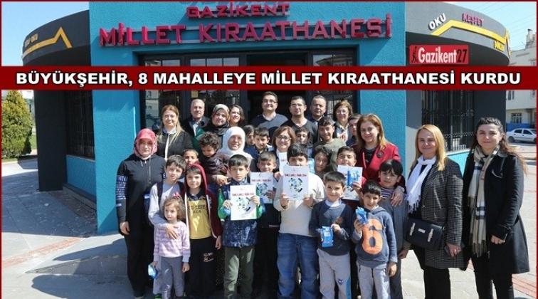 Sosyal belediyecilikte tüm Türkiye’ye model olan Büyükşehir, Cumhurbaşkanın, “Her ilde, kitaplarla döşeli, içerisinde kahvesi, keki olacak Millet Kıraathaneleri kuracağız. Gençlerimiz, yaşlılarımız buraya gelecek, hem kitabını okuyacak, hem kekini, çayını ve kahvesini ücretsiz alacak" sözleriyle gündeme getirdiği Millet Kıraathaneleri Projesi’ne sahip çıktı. Büyükşehir Belediye Başkanı Fatma Şahin’in talimatıyla Millet Kıraathanesi, kentin 8 farklı noktasında hizmete alındı. Buna göre, Nizip ilçesine, Şehitkâmil ilçesine bağlı Burak Mahallesi’ne, Belkız Mahallesi’ne, 8 Şubat Mahallesi’ne, İncilikaya Mahallesi’ne, Şahinbey ilçesinde Güneş Mahallesi’ne, Ocaklar Mahallesi’ne ve Türkmenler Mahallesi’ne Millet Kıraathanesi açıldı. Her gün 09.00 ile 19.00 saatleri arasında açık tutulan millet kıraathanelerindeki her yaşa hitap eden geniş kitap envanteri, vatandaşların ilgisiyle karşılaştı.