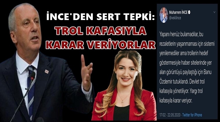 "Yargı trol kafasıyla karar veriyor" diyen Muharrem İnce'nin Banu Özdemir'in tutuklanmasına tepki gösterdiği açıklaması şöyle: