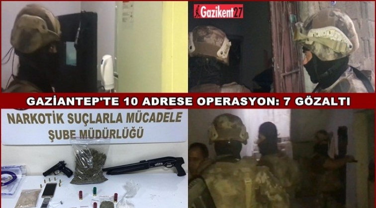 Gaziantep Emniyet Müdürlüğü'nden yapılan açıklamaya göre, Narkotik Suçlarla Mücadele Şube Müdürlüğü ekiplerince, Vatan Mahallesi'nde 10 adrese eş zamanlı operasyon düzenlendi. Adreslerde yapılan aramalarda, 700 gram esrar, 180 gram eroin, 60 gram metamfetamin, 20 uyuşturucu hap, 1 tabanca, 1 pompalı tüfek ve bunlara ait mermiler ele geçirildi. Operasyonlarda 7 kişi gözaltına alındı. Mahkemeye çıkarılan 7 şüpheliden 3'ü tutuklandı.