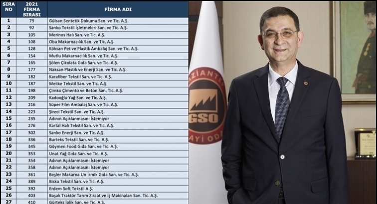 Gaziantep Sanayi Odası (GSO) Yönetim Kurulu Başkanı Adnan Ünverdi, İstanbul Sanayi Odası (İSO) tarafından açıklanan ’Türkiye’nin 500 Büyük Sanayi Kuruluşu 2021 Araştırması’na göre Gaziantep’ten 33 firmanın listede yer aldığını söyledi.