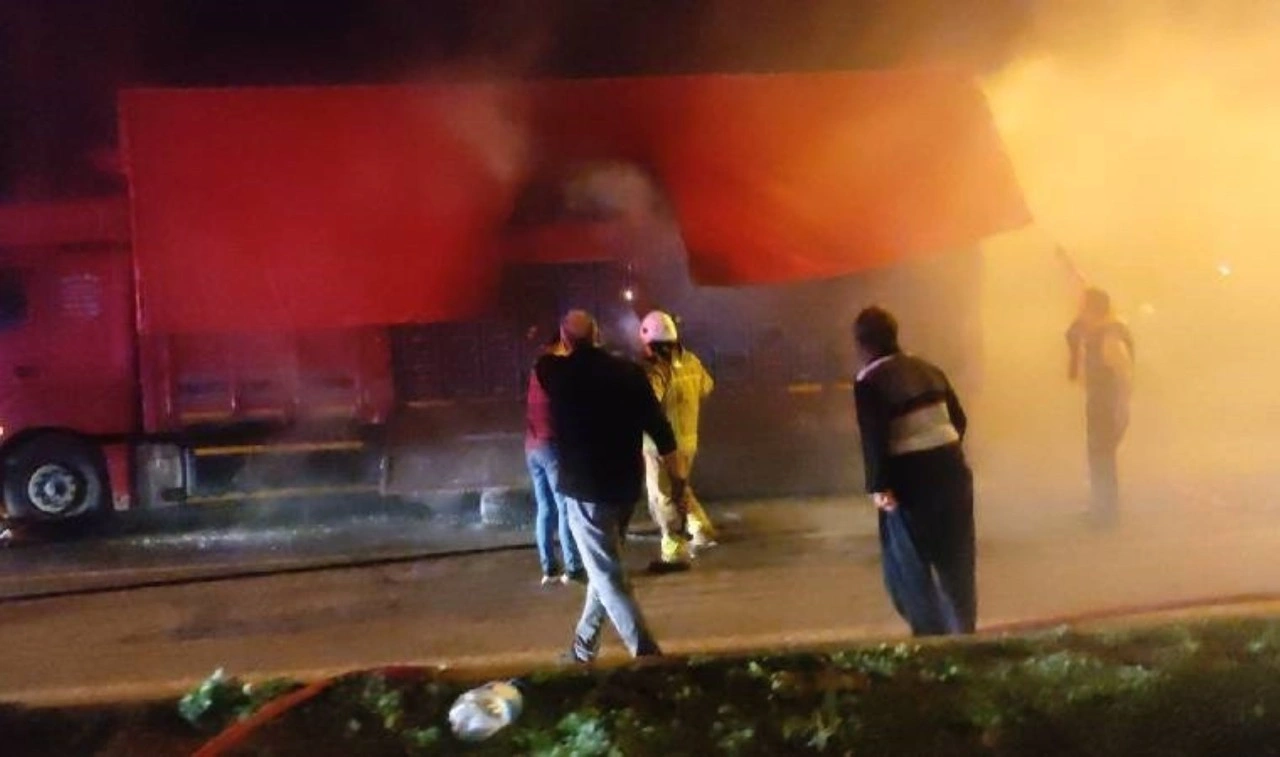 Diğer sürücülerin ihbarı üzerine olay yerine itfaiye ve polis ekipleri sevk edilirken yangın büyüyerek kamyonu sardı. Yangın, olay yerine gelen itfaiye ekiplerinin kısa süreli müdahalesiyle söndürüldü.