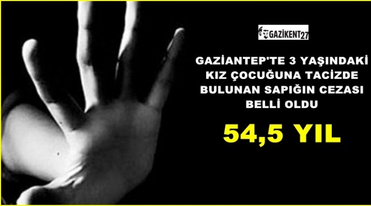 Gaziantep'te 4 yıl önce 3 yaşındaki kız çocuğunu taciz edip yaraladığı gerekçesiyle 50 yıl hapis cezası verilen sanık, yeniden yargılandığı davada 54,5 yıl hapis cezasına çarptırıldı.
