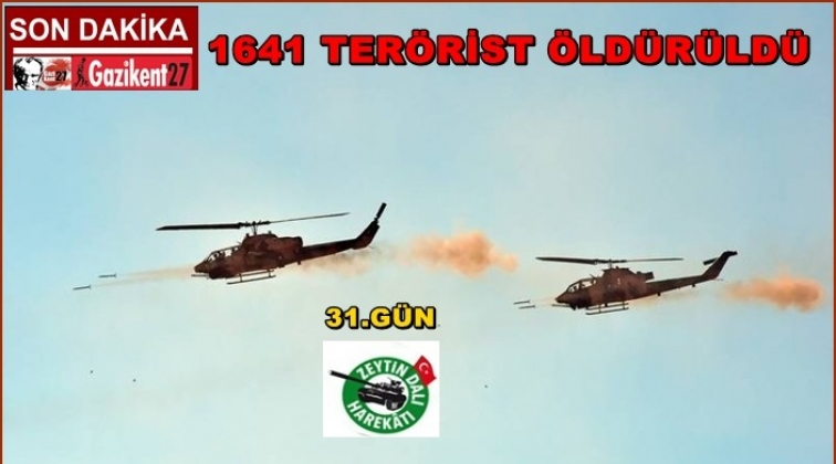 Türk Silahlı Kuvvetleri'nce, Zeytin Dalı Harekatı'nın başlangıcından bu yana 1641 teröristin etkisiz hale getirildiği bildirildi.