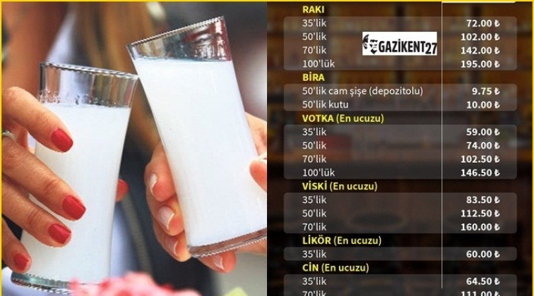 Resmi fiyat listesine göre 50'lik rakı 100 TL'yi aştı. Bir kutu bira 10 TL oldu.
