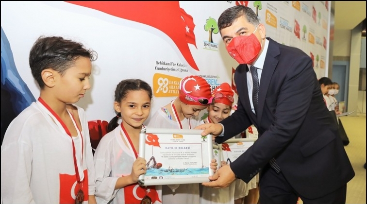 Şehitkamil Belediye Başkanlığınca, Cumhuriyetin kuruluşunun 98. yıl dönümü kutlama etkinlikleri çerçevesinde ‘98 Dakika Cumhuriyet Bayrak Yüzme Yarışı’ düzenlendi. Alleben Yüzme Havuzunda cumhur, cumhuriyete ve ay-yıldızlı şanlı bayrağa olan büyük sevgisini attığı kulaçlarla gösterdi.