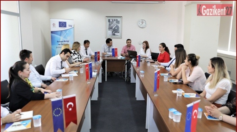 Avrupa Birliği Türkiye Delegasyonu tarafından fonlanan Gaziantep AB Bilgi Merkezinin faaliyetlerinin ve yürüttüğü çalışmaların anlatıldığı toplantıya 28 kişi katılırken, IPA, IPARD ve FRIT programları hakkında sunumlar gerçekleştirildi.