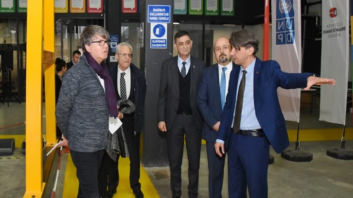 Avrupa Birliği Türkiye Delegasyonu Program Yöneticileri Alessandro Budak, Michael Cat, Program Asistanı Güliz Özmen ve Birleşmiş Milletler Kalkınma Programı (UNDP) Bölge Koordinatörü Hamit Doğan’dan oluşan heyet, Model Fabrika’ya yaptıkları ziyarette GSO Yönetim Kurulu Başkanı Adnan Ünverdi, Başkan Yardımcısı Başar Küçükparmak ve Model Fabrika heyeti ile bir araya geldi.