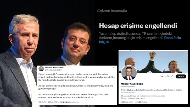 Ankara Büyükşehir Belediye (ABB) Başkanı Mansur Yavaş, İstanbul Büyükşehir Belediye (İBB) Başkanı ve CHP'nin Cumhurbaşkanı adayı Ekrem İmamoğlu’nun X (Twitter) hesabına getirilen erişim engeline tepki gösterdi.