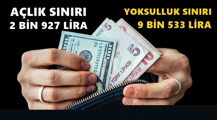 Türk İş, "Ağustos 2021 Açlık ve Yoksulluk Sınırı Araştırması"nın sonuçlarına göre, ağustos ayında dört kişilik ailenin açlık sınırı 2 bin 927, yoksulluk sınırı ise 9 bin 533 lira oldu.