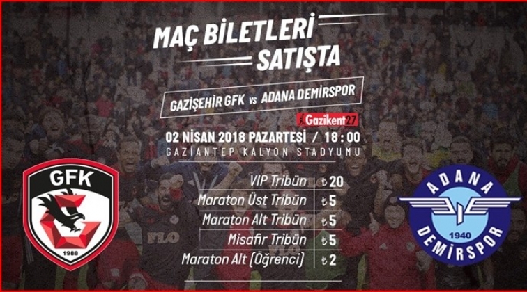 Gazişehir Gaziantep FK'nın, TFF 1. Lig'in 29. haftasında kendi sahasında oynayacağı Adana Demirspor maçı biletleri satışa sunuldu.