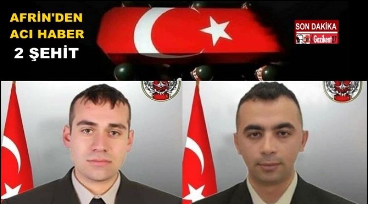 Türk Silahlı Kuvvetleri (TSK), Zeytin Dalı Harekatı kapsamında Afrin bölgesinde icra edilen arama tarama faaliyetleri esnasında el yapımı patlayıcının infilak etmesi sonucunda iki askerin şehit olduğunu açıkladı.