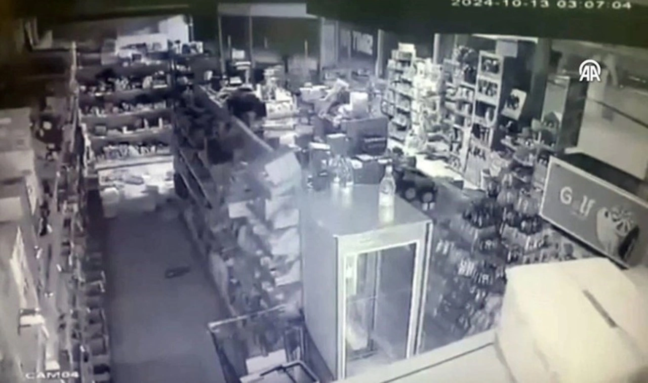 Bir marketin güvenli kameralarına yansıyan görüntülerde ise deprem anında raflardaki birçok ürünün yere düştüğü görülüyor.