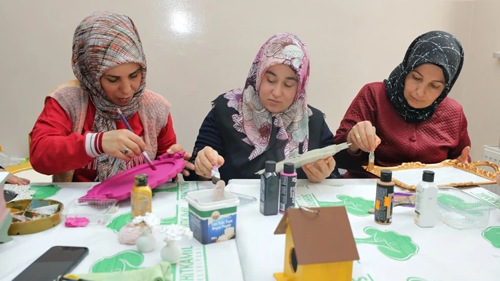 Kahramanmaraş merkezli yaşanan ve 11 ilde etkili olan deprem afetinin ardından bir süredir kapalı olan Şehitkamil Belediyesine bağlı aile merkezleri, normalleşme dönemiyle birlikte tekrar hizmete açıldı. Pir Sultan Aile Merkezi’nde açılan; mefruşat, ahşap boyama ve çeşitli kurslara katılan kadınlar, eğitmenler nezaretinde; mefruşat, Antep işi, tel kırma, iğne oyası, dikiş nakış ve ahşap boyama tekniklerini öğreniyorlar. Çeyizlik nakış ve benzeri işleri de öğrenen kadınlar, bir taraftan depremin üzerlerindeki stres, korku ve paniği atmaya çalışırken, diğer taraftan çocukları için çeyizlik hazırlıyor.