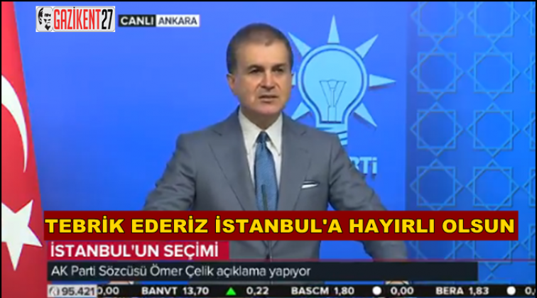 AK Parti Sözcüsü Ömer Çelik "İmamoğlu'nu tebrik ederiz, İstanbul'a hayırlı olsun" dedi.