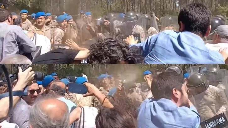 Ağaç kesimini durdurmak isteyen köylüler, desteğe gelen doğa savunucuları, Yeşil Sol Parti Milletvekilleri Perihan Koca ve İbrahim Akın'ın yürümek istediği sırada jandarma biber gazı, TOMA ve joplarla saldırdı.