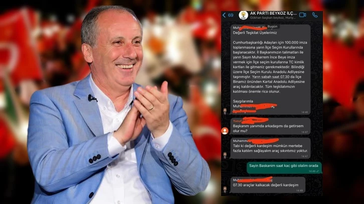 AKP Beykoz İlçe Başkanlığı'nın whatsapp grubunda AKP'liler Muharrem İnce'nin 100 bin imza toplaması için organize olmaya başladı.