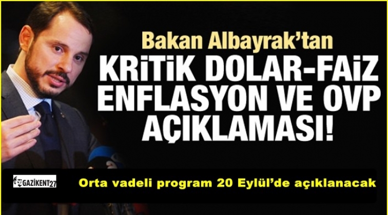 Hazine ve Maliye Bakanı Berat Albayrak yaptığı son dakika açıklamasında, orta vadeli ekonomi planının 20 Eylül'de açıklanacağını ve enflasyonun ekim ayında düşüşe geçeceğini duyurdu.