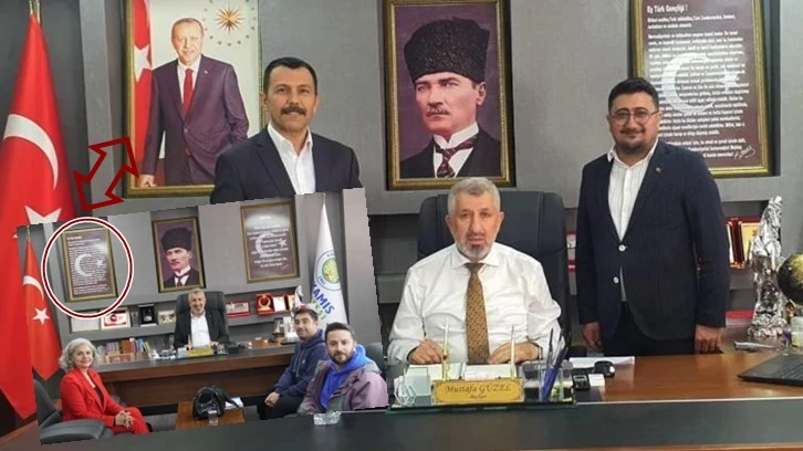 CHP’den istifa ederek AKP’ye geçen Gaziantep Karkamış Belediye Başkanı Mustafa Güzel’in ilk icraatı tepki çekti. Makam odasında değişiklik yapan Güzel, Andımız’ın yazılı olduğu tabloyu indirerek, yerine Cumhurbaşkanı ve AKP Genel Başkanı Erdoğan’ın fotoğrafını astı.