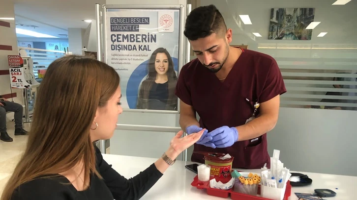 Vatandaşları diyabet konusunda uyaran ve onlara ücretsiz ölçüm yapan sağlık çalışanları, diyabetten korunma yöntemleri ile diyabet cerrahisi konusunda da bilgilendirme yaptı.