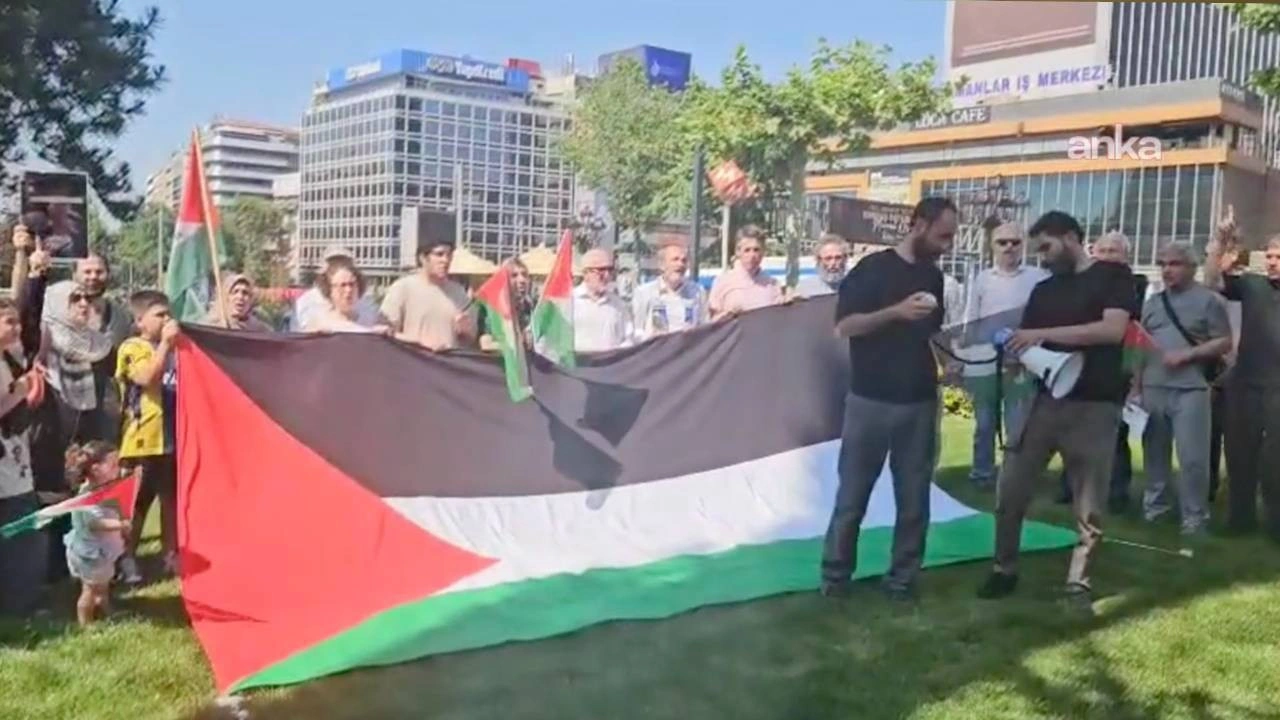 Direniş Çadırı Platformu, İsrail'in Gazze Şeridi’ne yardım götürmek için yola çıkan Özgürlük Filosu Koalisyonu’na (Freedom Flotilla Coalition - FFC) ait "Madleen" adlı yelkenliyi alıkoymasını Ankara’da Güvenpark’ta protesto etti. "Madleen gemisi onurumuzdur”, “Uyan, diren, özgürleş”, “Nehirden denize özgür Filistin” sloganları atan platform üyeleri, burada basın açıklaması yaptı. Platform adına açıklamayı okuyan Yusuf Şanlı, şunları söyledi: