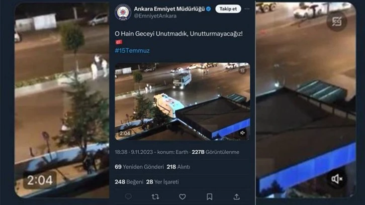 Ankara Emniyet Müdürlüğü sosyal medya hesabından yayınladığı 15 Temmuz videosunu tepkilerin ardından kaldırdı.
