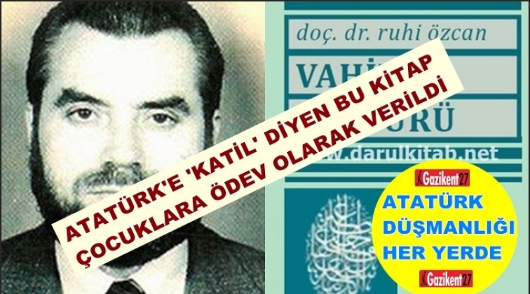 Atatürk Üniversitesi İlahiyat Fakültesi öğretim üyesi Doçent Ruhi Özcan’ın ‘Vahiy Kültürü’ adlı kitabı çocuklara ödev olarak verildi. Kitapta, Atatürk’e iftiralar atılıyor ve Cumhuriyet kadroları “Din bilginlerini katletmekle” suçlanıyor.