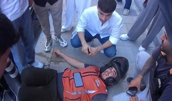 Merkez Cami Sokak'ta meydana aldığı siparişi götüren Muhammet Buğrahan Darıcı yönetimindeki motosiklete bir otomobil çarptı. Çarpmanın etkisi ile savrulan motokurye Darıcı yaralandı. Yaralı çevredekiler ve diğer motokuryeler tarafından yol kenarına alınırken, sağlık ve polis ekiplerine haber verildi. Arkadaşları ile sürekli konuşarak moralini yüksek tutmaya çalışan motokuryelerin sayısı kısa sürede arttı. Motokuryeler polis ve sağlık ekipleri gelinceye kadar yaralı meslektaşlarını bir an olsun yalnız bırakmadı. Sağlık ekiplerinin gelmesi ile birlikte ilk müdahalesi burada yapılan Muhammet Buğrahan Darıcı hastaneye kaldırıldı. Polis, kazaya karışan otomobil sürücüsü hakkında inceleme başlattı.