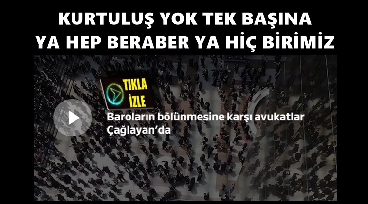Polis ablukasına rağmen avukatlar Çağlayan Adliyesi içerisinde toplanıyor. Yüzlerce avukat "Kurtuluş yok tek başına ya hep beraber ya hiç birimiz" sloganı atıyor.