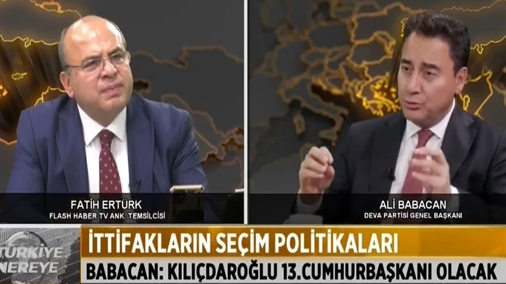 DEVA Partisi Genel Başkanı Ali Babacan, Flash Haber TV'de 'Türkiye Nereye' programında Fatih Ertürk'ün sorularını yanıtladı. Babacan şu ifadeleri kullandı: