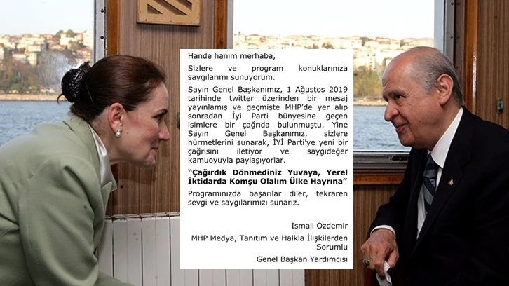 MHP Genel Başkan Yardımcısı İsmail Özdemir, 1 Ağustos 2019'da Devlet Bahçeli'nin sosyal medya hesabından MHP'den İYİ Parti'ye geçen isimlere yaptığı çağrıyı anımsatarak bunu yinelediğini paylaştı.