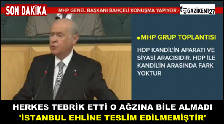 Bahçeli, "Türkiye İstanbul seçimlerinde demokrasi dersi vermiştir. Ancak 23 Haziran'da İstanbul ehline teslim edilmemiştir. Bunun sonuçlarını da ilerleyen dönem ve yıllarda görmemiz kuvvetle muhtemeldir. Seçilen İBB Başkanının ne yapıp yapmadığı kısa sürede belli olacaktır. İBB Başkanının bütün tasarruflarını takip edeceğiz gerekli notları alacağız. " dedi.