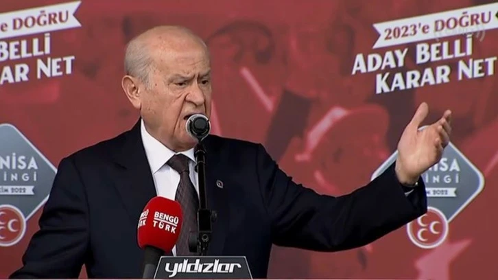 "Cumhurbaşkanı adayı bulabilmek için icazet yarışına girenler gelsinler Manisa’ya baksınlar. Baksınlar da muhteşem coşkuyu görsünler. Koştura koştura ABD’de soluğu alan işbirlikçilerin yüreği yetiyorsa şu imrenilecek heyecan dalgasına kulak versinler. Türkiye’de bulamadıklarını yabancı ülkelerde arayanlar, ekmeğini yediği, suyunu içtiği, havasını soluduğu vatanını gittikleri ülkelerde şikayet edenler çok iyi bilsinler ki, bizim adayımız belli, kararımız nettir. Cumhurbaşkanı adayımız da Sayın Recep Tayyip Erdoğan’dır. Hedefimiz Sayın Erdoğan’ın açık ara farkla tekrar Cumhurbaşkanı seçilmesi, TBMM’de milletvekili sayısı ve siyasal destek itibariyle çok güçlü bir Milliyetçi Hareket Partisi grubunun ve Cumhur İttifakı’nın tecessüm ve tecelli etmesidir" ifadelerini kullanan MHP lideri Bahçeli'nin konuşmasından satır başları şöyle: