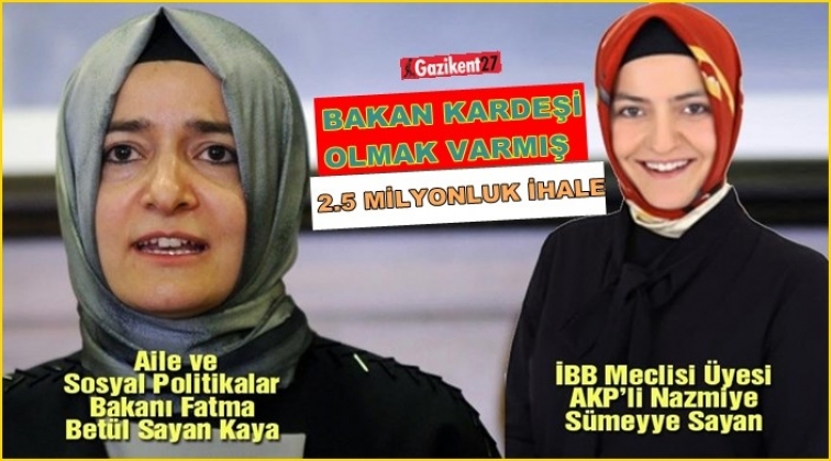 Aile ve Sosyal Politikalar Bakanı Fatma Betül Sayan Kaya’nın meclis üyesi kardeşi Sümeyye Sayan’ın Gaziosmanpaşa Belediyesi’nden aldığı 'etik tartışması' yaratan ihalelere bir yenisi daha eklendi. 2015-2016 yıllarında Gaziosmanpaşa Belediyesi’nden toplam 1 milyon liralık ihale alan Sayan’a 2017 yılında da 673 bin 200 liralık ihale verildi. Bakanın 29 yaşındaki İBB meclis üyesi kardeşi, yasalara aykırı olmasına rağmen 3 yılda yaklaşık 1.5 milyon liralık ihale almış oldu.