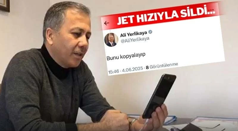 İçişleri Bakanı Ali Yerlikaya, X üzerinden yaptığı yanlış paylaşımı jet hızıyla sildi.