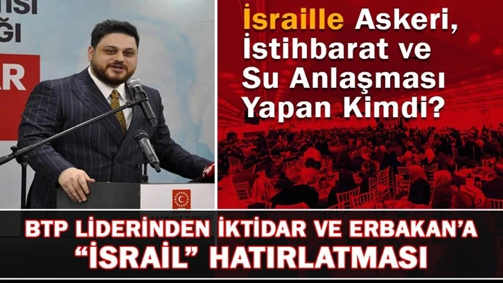 Konuşmasında isim vermeden Yeniden Refah Partisi Genel Başkanı Fatih Erbakan’ın iktidarı Filistin üzerinden eleştirmesine dikkat çeken BTP lideri, hem Fatih Erbakan’a hem de iktidara Necmettin Erbakan’ın Başbakanlığı döneminde İsrail ile yapılan anlaşmaları hatırlattı.