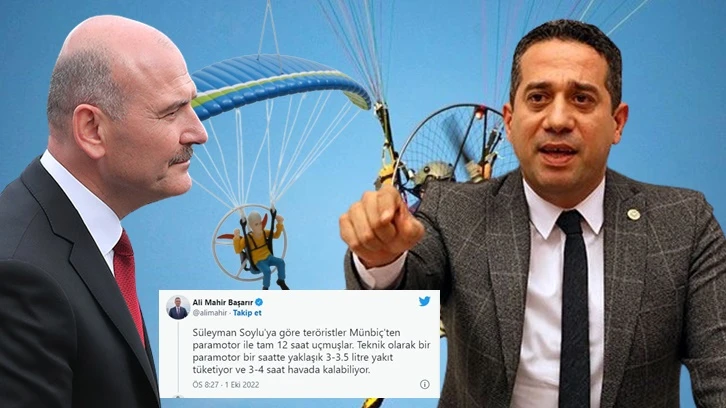 CHP Mersin Milletvekili Ali Mahir Başarır, İçişleri Bakanı Soylu'nun "Eylemden önceki akşam saat 20.00 itibarıyla tam 12-13 saat paramotorla, paraşütlü motor var ya, motorlu paraşüt" sözlerine sosyal medya hesabından tepki gösterdi.