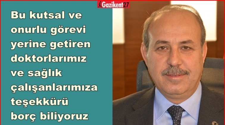 Başkan Kılıç yayımladığı mesajda “İnsanların yaşam kalitesini yükseltmek ve halkımıza daha sağlıklı bir yaşam sağlamak adına sağlık çalışanlarımız bütün zorluklara göğüs geriyor. En önemli varlığımız olan ruh ve beden sağlığımızı emanet ettiğimiz, sağlıklı toplumların oluşmasında emek veren sağlık personelinin hayatımızdaki yeri çok büyüktür. Bir toplumun huzurlu mutlu ve başarılı olmasının yolu o toplumun her şeyden önce sağlıklı bireylerden oluşmasından geçer. Bu sebeple sağlık çalışanları bireyleri tedavi ederken aynı zamanda toplum ve ülke için çok önemli bir görevi ifa etmektedirler. Tek gayesi insan yaşamı ve sağlığı olan kıymetli Türk Hekimleri, ebe, hemşire, sağlık memurlarımızın ve bütün sağlık çalışanlarının çalışma koşulları ve özlük haklarının iyileştirilmesi, onlara mesleklerinin saygınlığına yakışır, rahat çalışabilecekleri ortam ve imkânların sağlanması en büyük dileğimdir. Bu kutsal ve onurlu görevi yerine getiren doktorlarımız ve sağlık çalışanlarımıza teşekkürü borç biliyor, bu duygu ve düşüncelerle, ülkemizin dört bir yanında fedakârca hizmet eden tüm sağlık çalışanlarımızın 14 Mart Tıp Bayramı'nı kutluyorum” dedi.