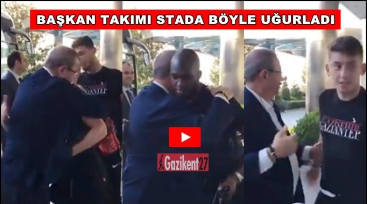 Gazişehir Gaziantep Futbol Kulübü Başkanı Adil Sani Konukoğlu, futbolcuları kaldıkları otelden maçın oynanacağı Başakşehir Fatih Terim Stadı'na tek tek kucaklayarak uğurladı.
