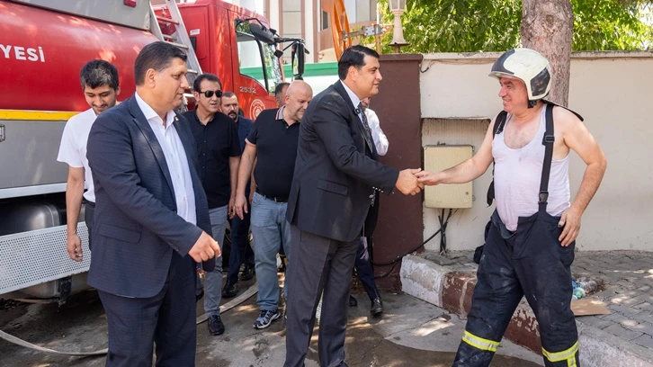 Başkan Umut Yılmaz, halı fabrikasında meydana gelen yangına müdahale çalışmalarını inceledi. Alevlerle mücadele eden ekiplere kolaylık dileyen Başkan Yılmaz, yönetici ve çalışanlara da ‘geçmiş olsun’ dileklerini iletti.