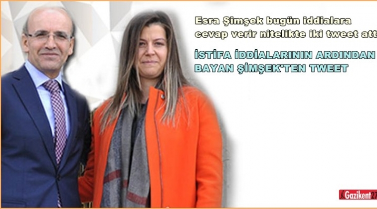 İstifa edeceği iddiaları gündeme gelen Başbakan Yardımcısı Mehmet Şimşek'in eşi Esra Şimşek bugün iddialara cevap verir nitelikte iki tweet attı.