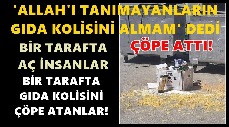 Binlerce insanın ihtiyaç duyduğu, alabilmek için günlerce beklediği, belediye ekiplerinin hazırlamak için günlerce uğraştığı gıda kolisinin çöpün kenarına atılması tepkiyle karşılandı. Sosyal medyada yüzlerce kişi “Çöpe atmak yerine ihtiyacı olan birine verseydin” diyerek o şahsa ahlak dersi verdi.