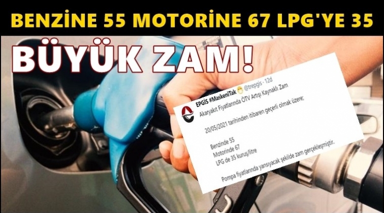 Enerji Petrol Gaz İkmal İstasyonları İşveren Sendikası (EPGİS) tarafından yapılan açıklamada vergi düzenlemesi sonrasında bugünden itibaren geçerli olmak üzere benzinin litre fiyatının 55 kuruş, motorinin 67 kuruş, LPG'nin ise 35 kuruş zamlandığını duyurdu.