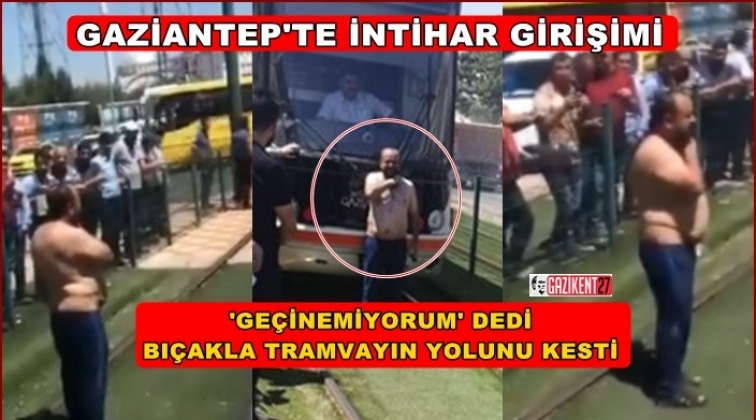Gaziantep'te tramvayın önüne çıkarak boğazına bıçak dayayan Yılmaz E. isimli şahıs intihar girişiminde bulundu.