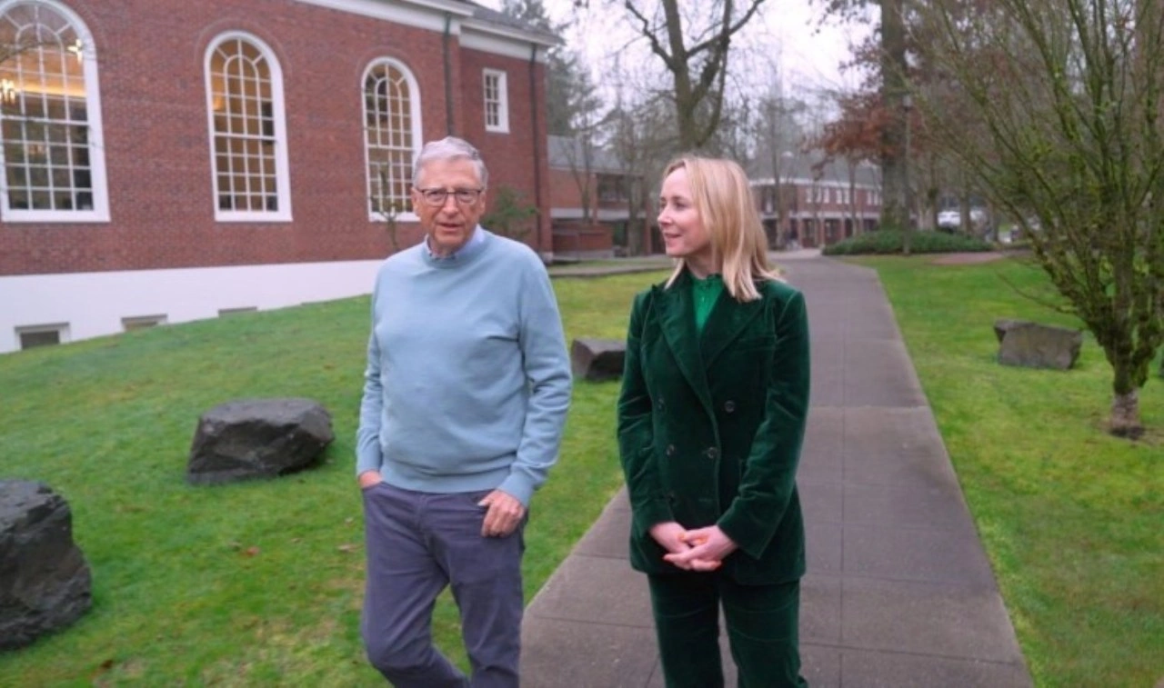 BBC Bill Gates ve BBC Kültür ve Medya Editörü Katie Razzall Seattle'da