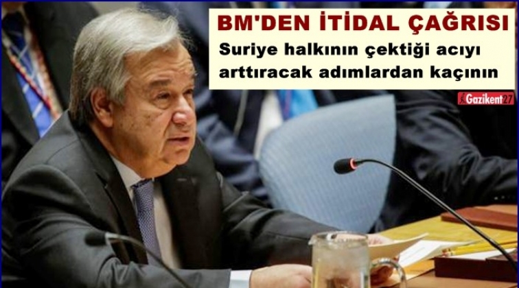 Guterres, "Güvenlik Konseyi'nin başlıca sorumluluğu uluslararası barış ve güvenliğin korunmasıdır. Konsey üyelerine birleşme ve bu sorumluluğu yerine getirme çağrısı yapıyorum. Tüm üyelerden bu tehlikeli koşullarda itidalli davranmaları ve durumu daha da gerecek ve Suriye halkının çektiği acıyı arttıracak adımlardan kaçınmalarını istiyorum." dedi.