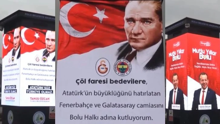 Özcan'ın talimatı ile bilboardlara konulan, 'Çöl faresi bedevilere, Atatürk'ün büyüklüğünü hatırlatan Fenerbahçe ve Galatasaray camiasını Bolu halkı adına kutluyorum. Atatürk'süz Türkiye olmaz' yazılı görseller, Bolu Cumhuriyet Başsavcılığı'nın kararı ile kaldırıldı. Başsavcılık ayrıca bilboardlara yansıtılan görseller ile ilgili soruşturma başlattı.
